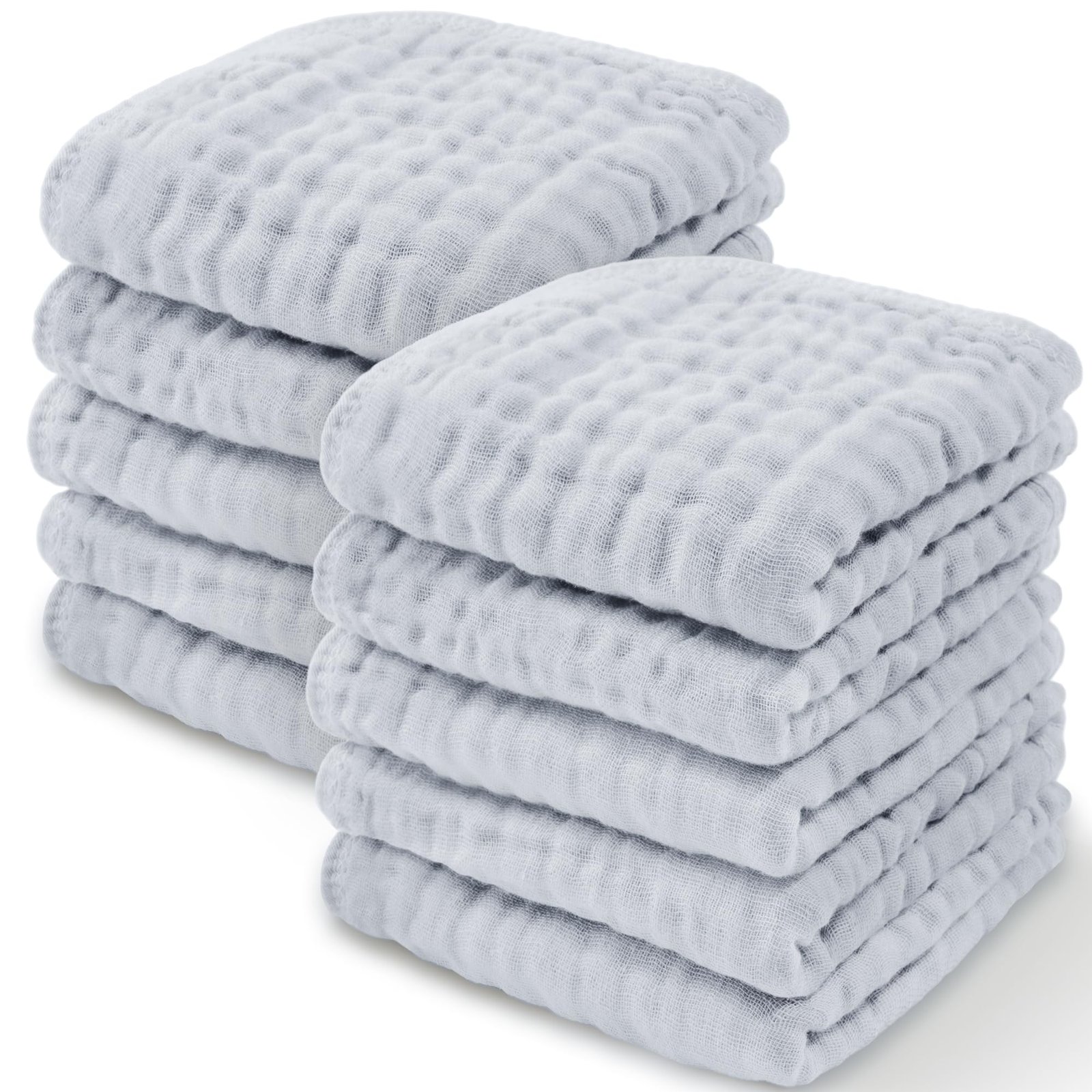 Baby Washcloths, Muslin Cotton Baby Towels 10 Pack -Large 10?x10? Wash Cloths Soft on Sensitive Skin, Absorbent for Boys & Girls, Newborn Baby & Toddlers Bibs & Burp Cloths Essentials Set, Slate