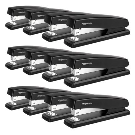Amazon Basics 25-Sheet Capacity, Non-Slip, Office Desk Stapler with 1000 Staples, Black – Pack of 12